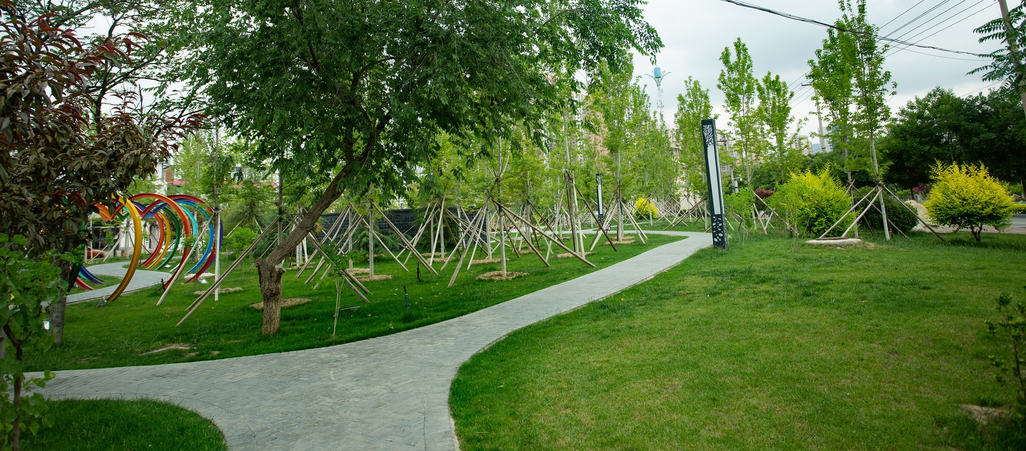 由我公司于2017年06月03日開(kāi)工建設(shè),主要施工項(xiàng)目包括園路、廣場(chǎng)、景墻、